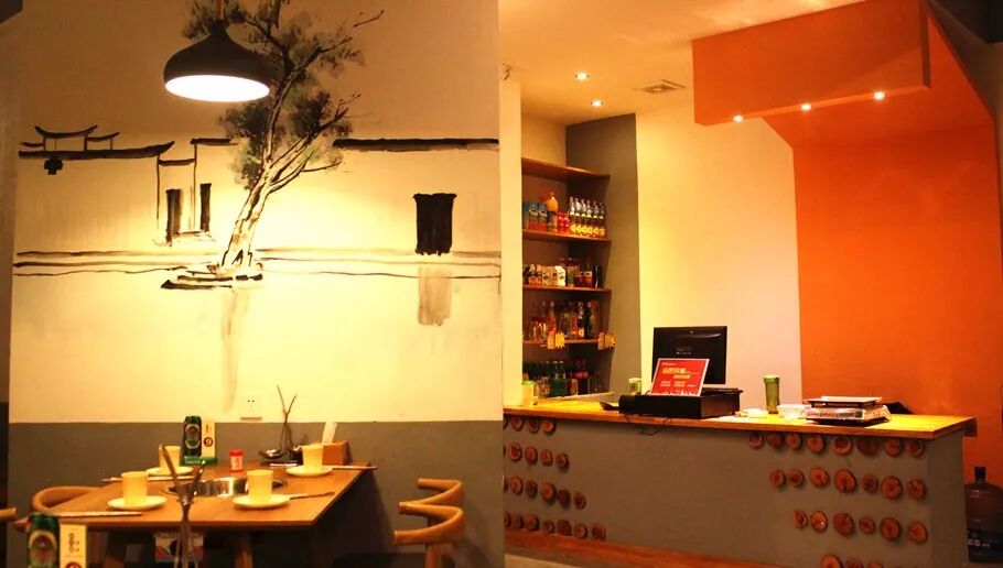 温暖的灯光,原木色的桌椅