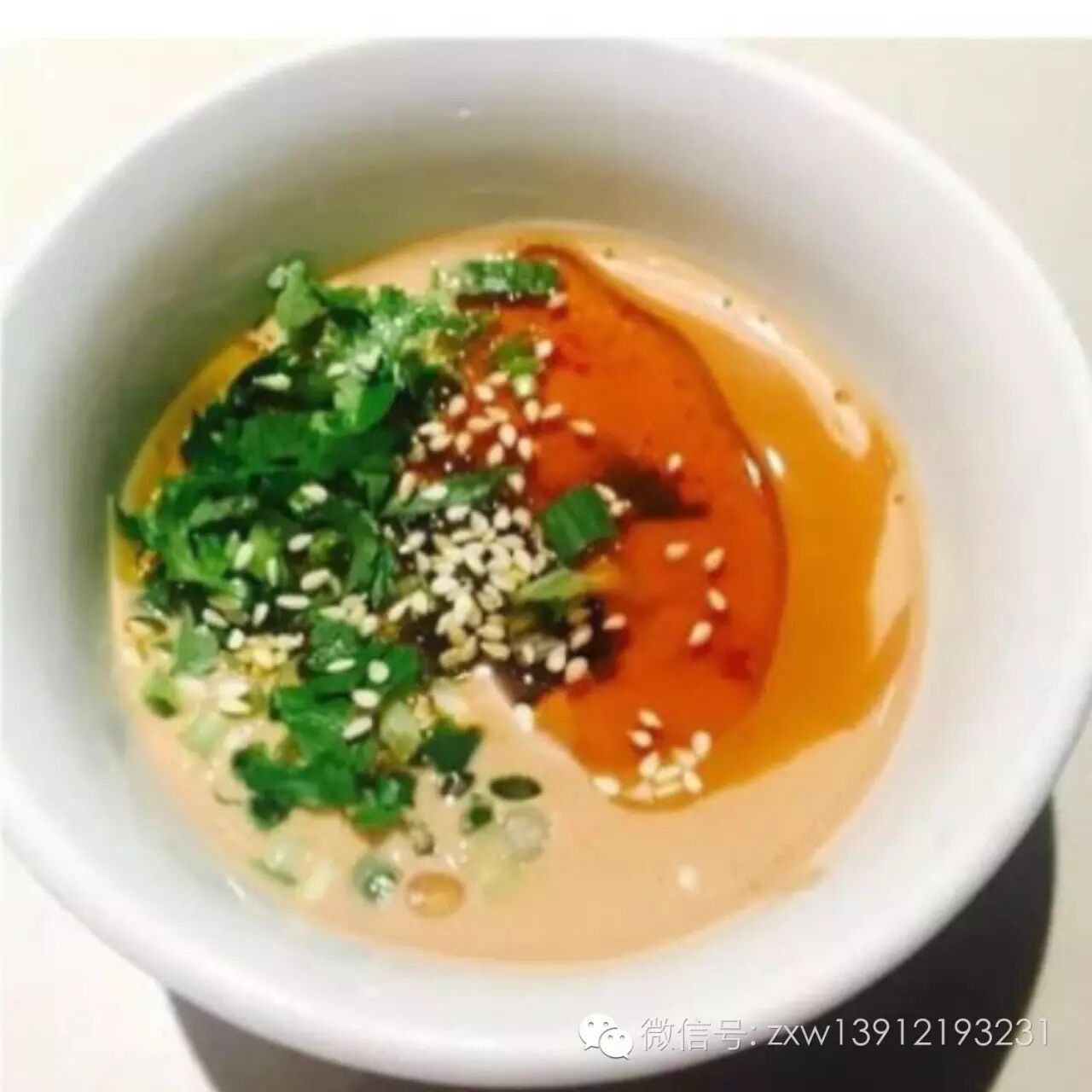 芝麻酱+腐乳汁+辣椒油+香菜+芝麻粒