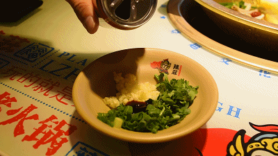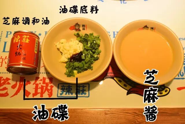 吃辣锅一定要蘸油碟!油碟!油碟!油碟!重要的事情说三遍!蒜泥+香油是官方CP,油碟可以增加食物润滑度!