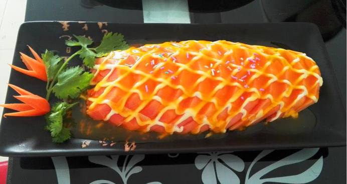 这道菜就不用多说了吧,木瓜女士的最爱,能把木瓜摆得成菠萝状也是创意十足了。